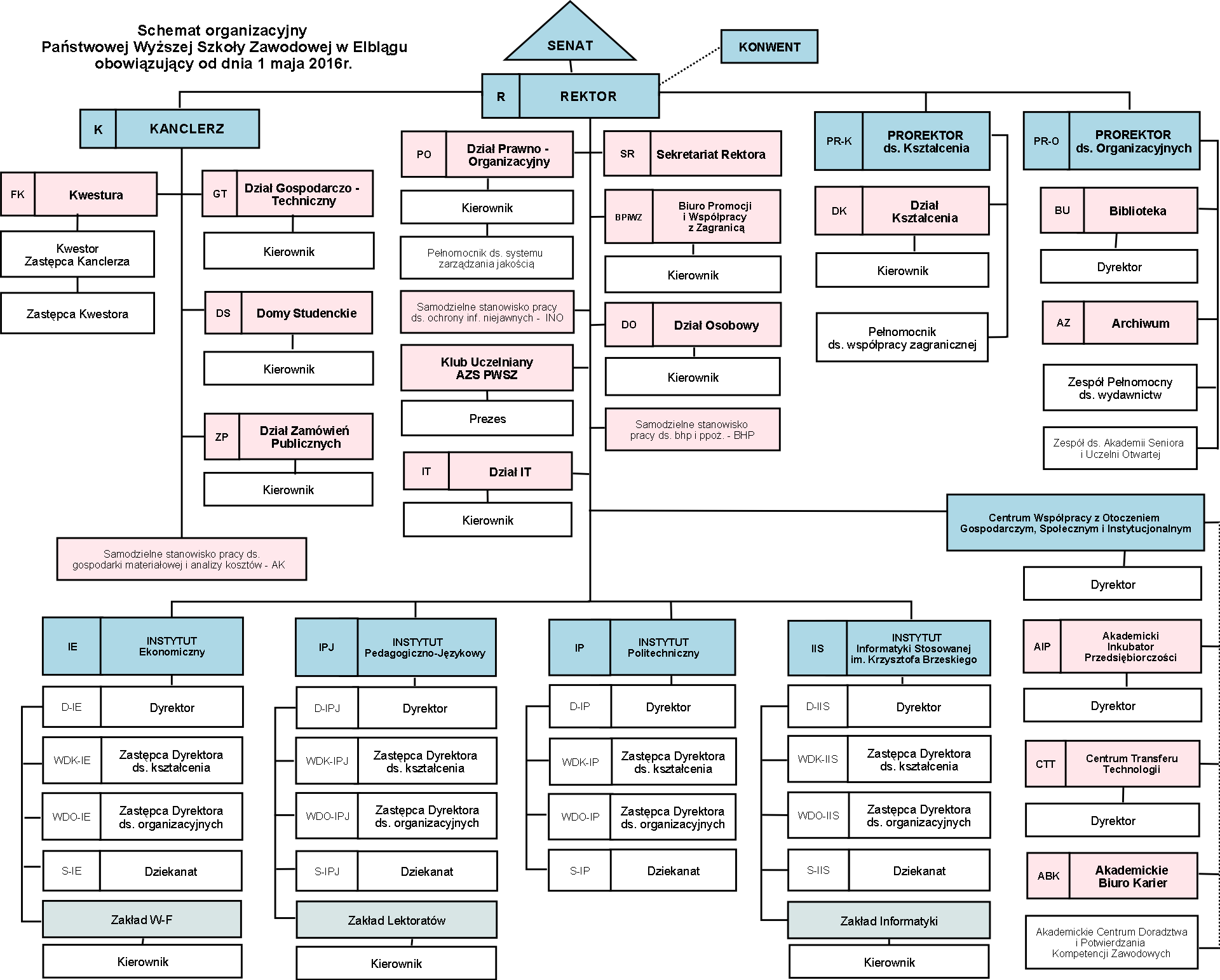 | 06/2016 | Utworzenie "Centrum Współpracy z Otoczeniem Gospodarczym, Społecznym i Instytucjonalnym" (schemat organizacyjny) |