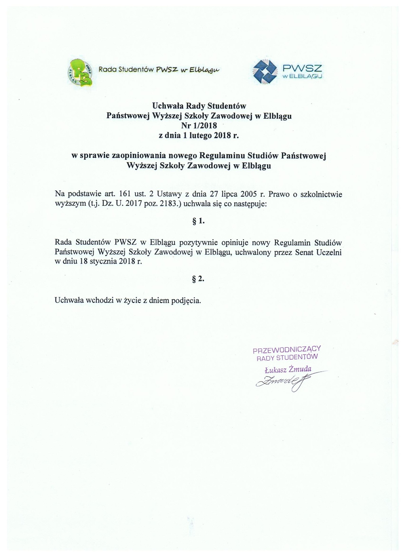| 44/2019 | Statut PWSZ w Elblągu (zmiana 02/2020, 16/2020) |